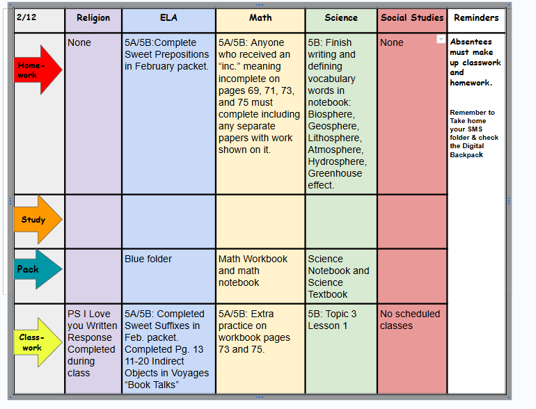 Homework/Reminders